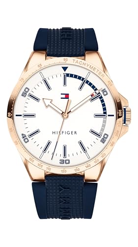 Tommy Hilfiger Men's Riverside Blue Silicone Ionic Rose Gold Plated Steel Quartz Watch, 1791526, White, 46.35 mm