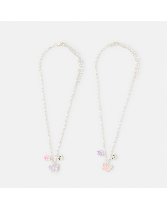 2 Pack BFF Butterfly Necklace - Silver Tone