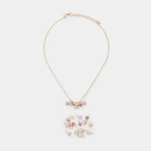 Cat & Bunny Charms Necklace - Pink and Gold Tone