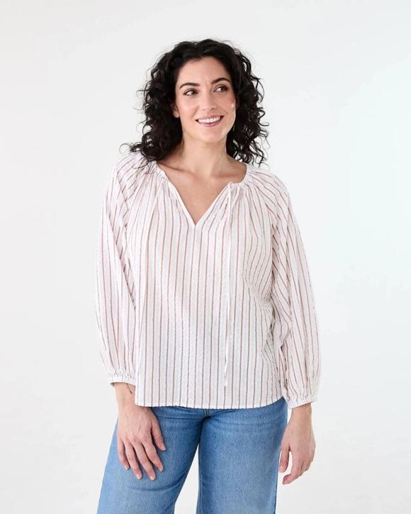 Long Sleeve Seersucker Tie Top
