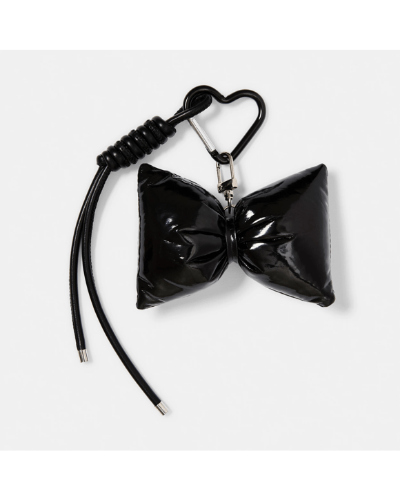Puffy PU Bow Charm Keyring - Silver Tone and Black