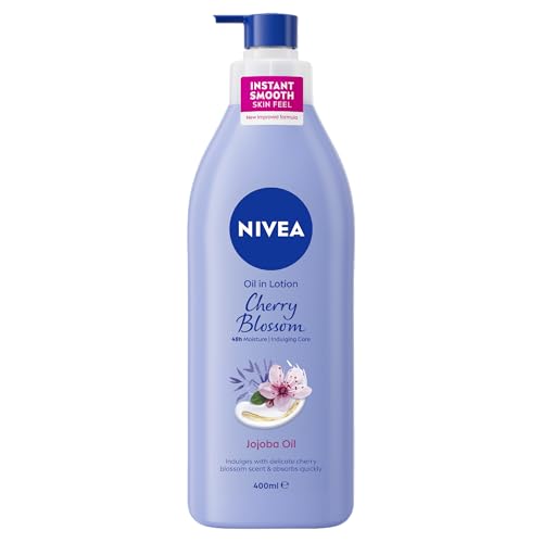NIVEA Oil-Infused Body Lotion With Cherry Blossom & Jojoba Oil 400ml | 48-Hour Hydration | For Soft, Smooth Skin | Delicate Floral Scent | Fast-Absorbing Formula | For Normal to Dry Skin