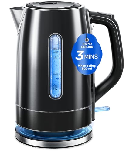 AUSELECT Electric Kettle - 1.7L Stainless Steel Kettle Black, 2200W Quick Boil Kettles with Boil-Dry & Overheat Protection, 3-Min Fast Boiling Hot Water Boiler for Tea, Coffee, Kitchen & Home