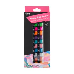 12 Pack Heavy Body Acrylic Colours - Neon and Metallic
