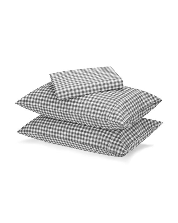 250 Thread Count Gingham Cotton Sheet Set - Double Bed, Grey