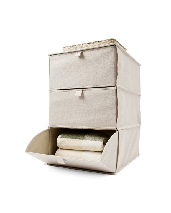 Linen Look 3 Tier Storage Unit - Beige