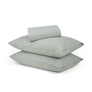 Stonewashed Chambray Cotton Sheet Set - Double Bed, Sage