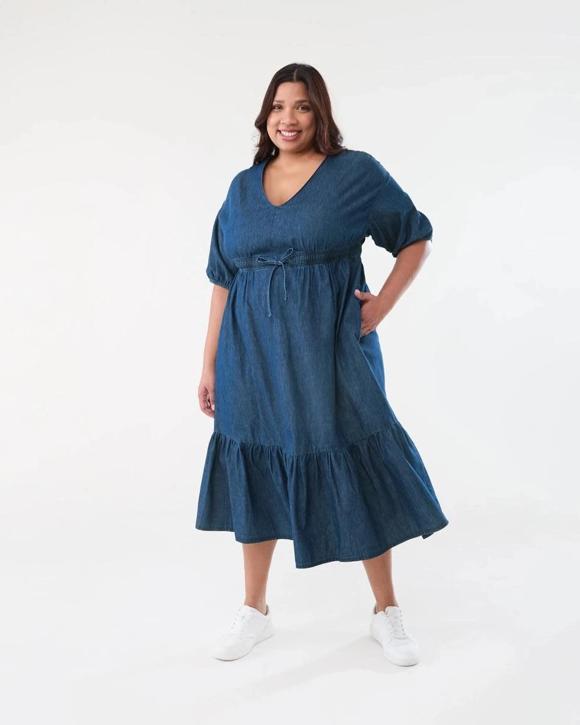 Curve Short Sleeve Chambray Midi Dress